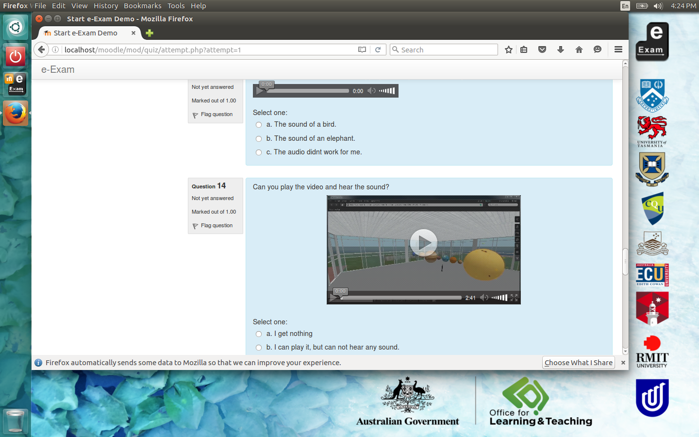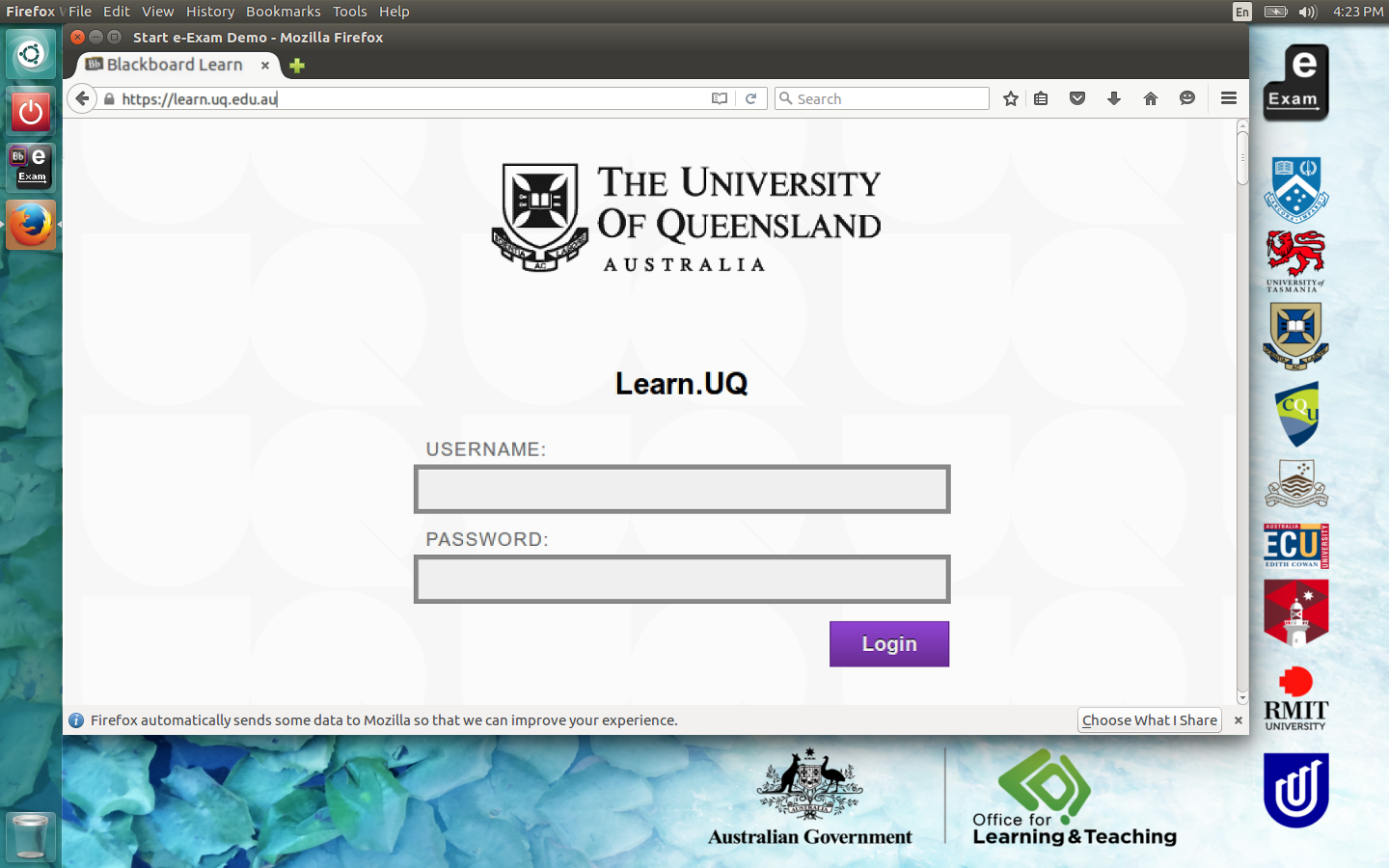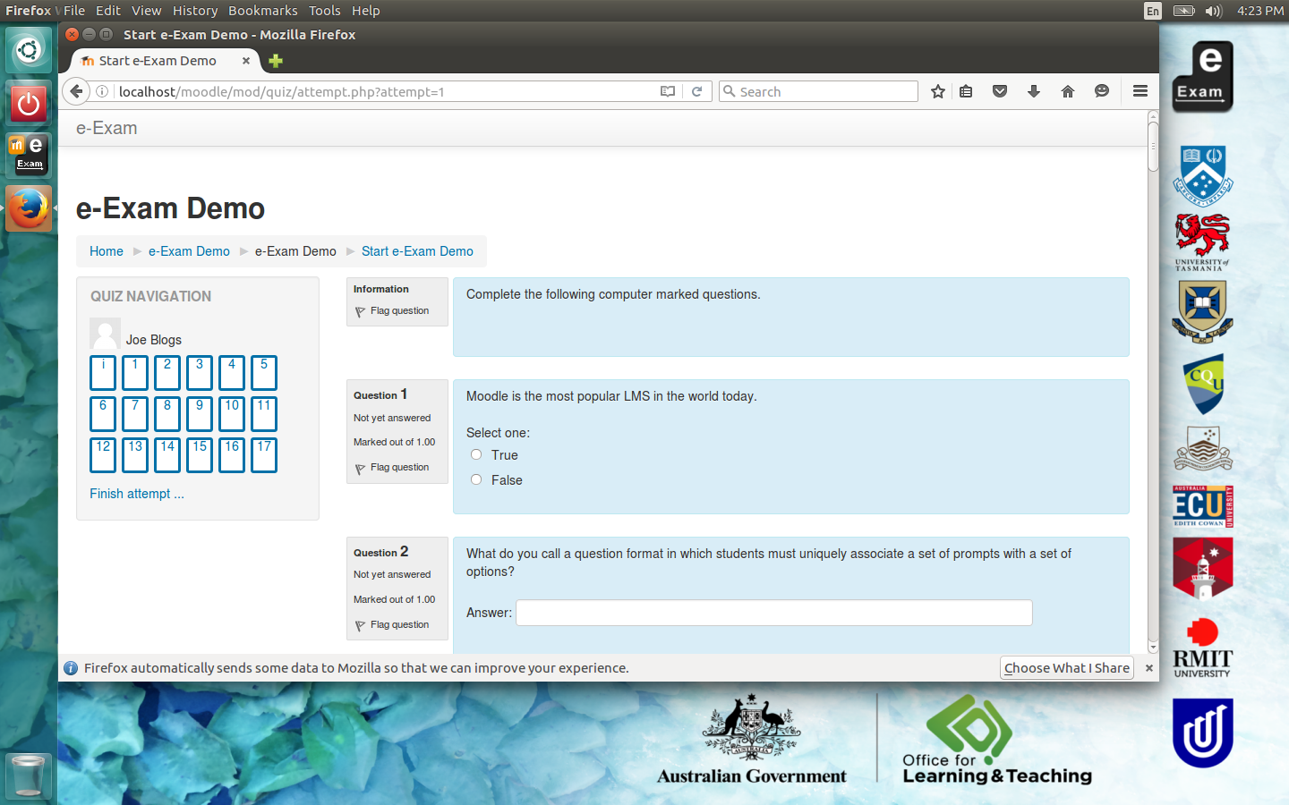 The e-Exam platform project is supported by an Australian Government Department of Education and Training grant.